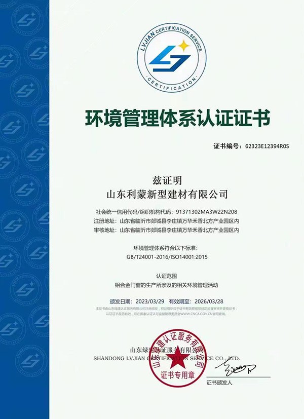 • Environmental Management System Certification Certificate