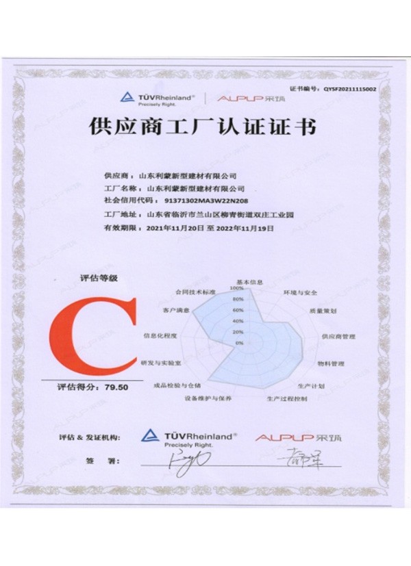 • Supplier Factory Certification Certificate